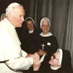 Drogie siostry, przez waszą konsekra­cję zakonną i wieloraki apostolat daje­cie wymowne świadectwo o dziedzict­wie duchowym Kościoła. Sam o tym mogłem się przekonać osobiście pod­czas moich odwiedzin w waszym kraju. Niech przykładem tej służby będzie za­łożycielka waszego zgromadzenia, któ­ra wczoraj została wyniesiona do chwa­ły ołtarzy.